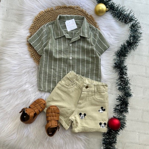 Camisa de lino sastrero verde línea bebés hasta 3 años