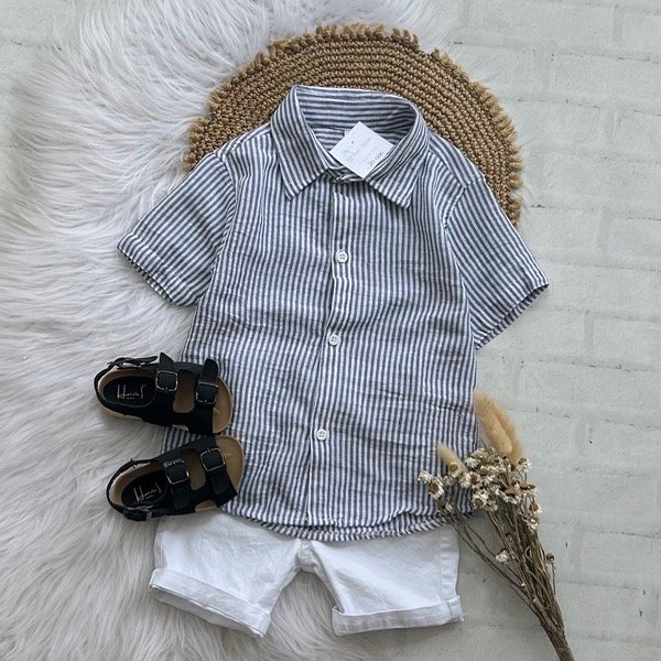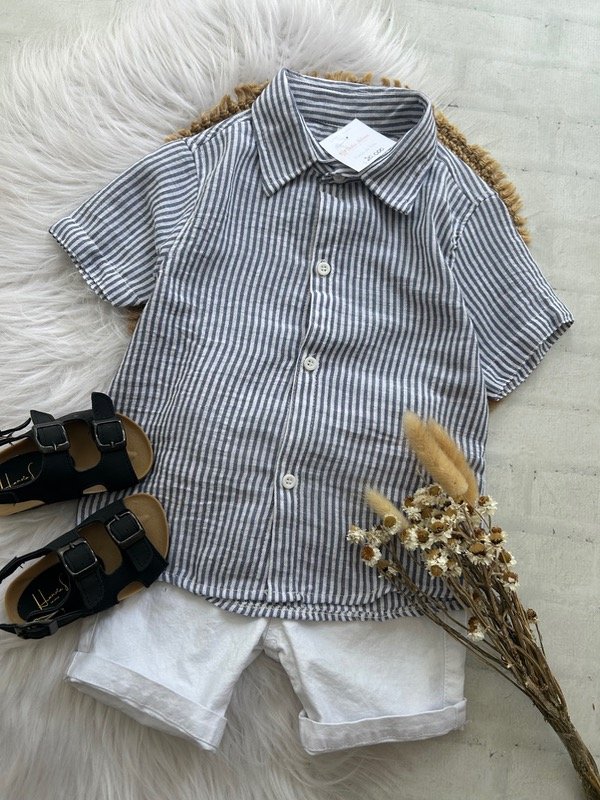 Camisa de lino rayada AZUL talles de niños 4/6/8